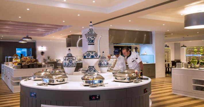 La Radisson Blu Resort & Thalasso oaspeții au la dispoziție 3 restaurante unde pot savura mâncăruri delicioase, în stil bufet sau à la carte. Preparate din bucătăria locală și internațională așteaptă să fie degustate în fiecare zi la micul dejun, prânz și cină. Masa poate fi servită atât în interior, cît si în aer liber, pe terasă, în funcție de vreme. 4 baruri, dintre care unul la piscină, sunt disponibile cu o ofertă variată de băuturi răcoritoare și alcoolice. Pentru cei cu anumite nevoi de nutriție, Radisson Blu Resort & Thalasso oferă meniuri pentru diete speciale.