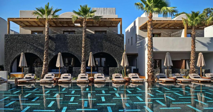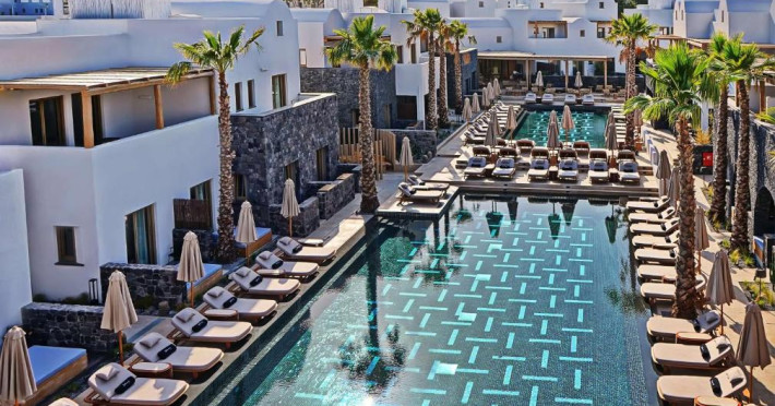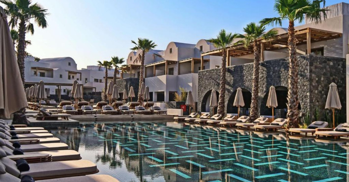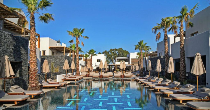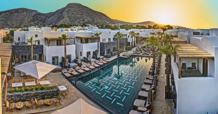 Radisson Blu Zaffron Resort, Santorini se află la 3 minute de mers pe jos de Plaja din Kamari și la 2,6 km de Plaja Agia Paraskevi. Aeroportul International din Santorini se află la 2 km.