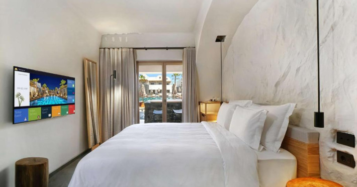 Acest hotel pune la dispoziția oaspeților camere cu aer condiționat, birou, cafetieră, un minibar, cutie de valori, televizor cu ecran plat și baie proprie cu duș. Baia proprie oferă articole de toaletă gratuite. La Radisson Blu Zaffron Resort, Santorini, camerele au lenjerie de pat și prosoape.