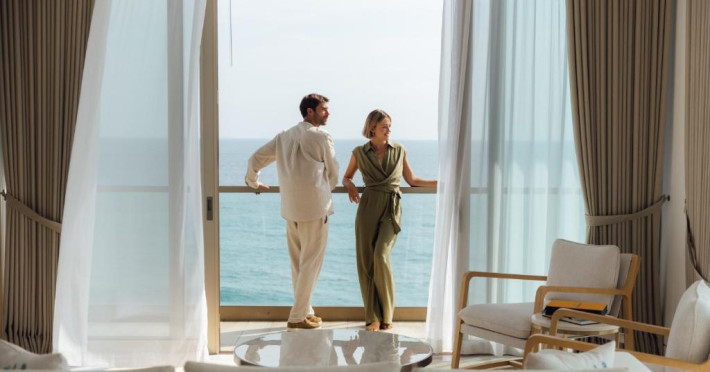Camerele elegante beneficiază de balcoane private cu vedere spre ocean, iar facilitățile premium includ piscină infinity cu panoramă spectaculoasă, centru spa cu tratamente ayurvedice și săli de fitness ultramoderne. Restaurantul principal servește specialități internaționale și asiatice autentice, iar barul de la piscină oferă cocktailuri rafinate și gustări ușoare.
