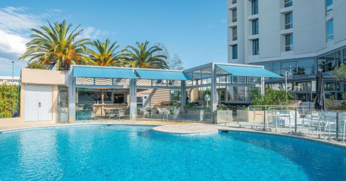 Hotelul dispune de centru de fitness, săli de conferințe moderne și serviciu de transfer către centrul orașului. Stația de tramvai Terminal 2 se află la doar cațiva pași, oferind conexiuni rapide către centrul istoric al Nisei și celebra Promenade des Anglais.