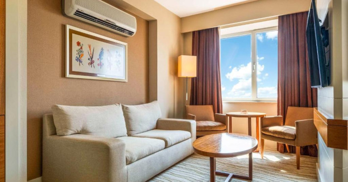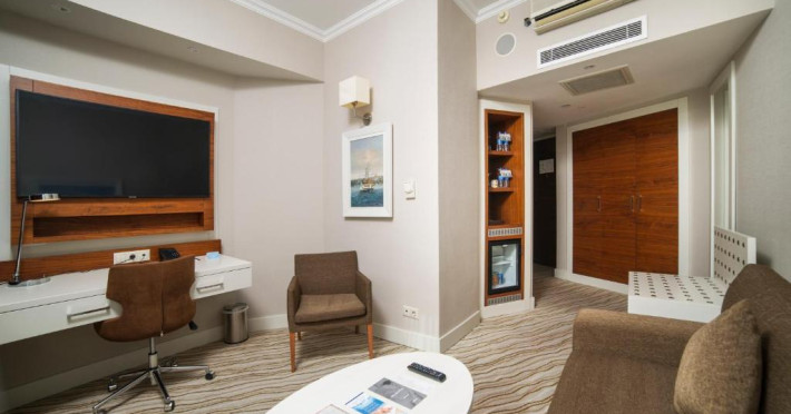 Camerele moderne combină confortul contemporan cu elemente de design otoman și oferă vedere spre orașul vechi sau spre Marea Marmara. Facilitățile premium includ un restaurant panoramic cu specific turcesc și internațional, un spa cu hammam tradițional și centru fitness, precum și o terasă cu vedere spectaculoară asupra orașului.