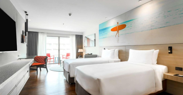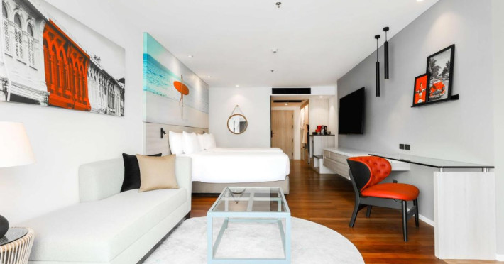Amplasat in inima vibrantă a orașului Patong și la doar 200 de metri de plajă, stațiunea noastră este primul Radisson RED din Thailanda, redefinind ospitalitatea de stil de viață de lux in „Țara zambetelor”. Mai mult decat un simplu loc de cazare, Radisson RED Phuket Patong Beach este un centru social in care creativitatea și conexiunea prosperă. Designul nostru contemporan indrăzneț, zonele comune vibrante și spațiile flexibile de lucru in comun, inclusiv birourile fierbinți și podurile private, sunt completate de Wi-Fi ultra-rapid pentru a vă menține plin de energie. De la holul nostru inspirat de artă pană la camerele și apartamentele unice RED, fiecare detaliu este conceput pentru a surprinde și incanta.