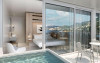 -Plaza sea view suite with private jacuzzi - Suita de lux spatioasa cu vedere la mare, include un dormitor cu pat queen-size, living si balcon cu jacuzzi.