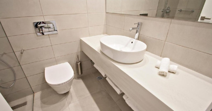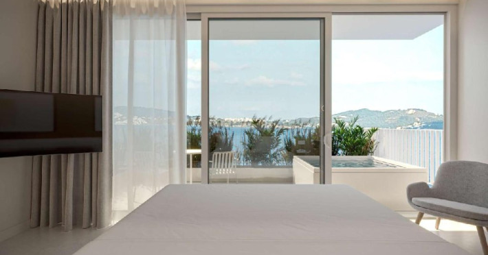 -Roof top sea view suite with private jacuzzi - Suita de lux spatioasa cu vedere la mare, situata la ultimul etaj, include un dormitor cu pat queen-size, living si balcon cu jacuzzi.