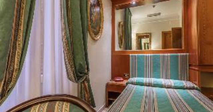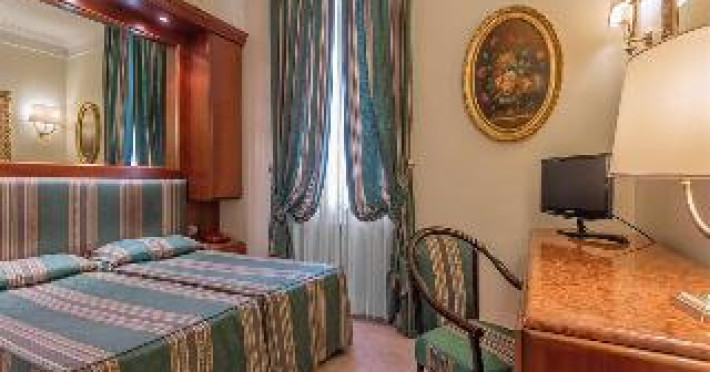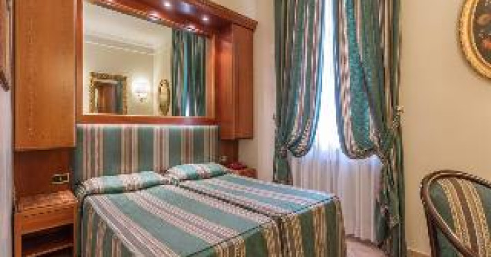 The city hotel is situated to the left of Termini Station, near Piazza della Repubblica and Via Nazionale. Ideally situated for access to all means of public transport (train, bus, metro), the hotel offers excellent shopping, business and cultural itineraries and is just a 15-minute journey on public transport from Piazza Venezia, the Spanish Steps and Trevi Fountain. The air-conditioned city hotel offers a total of 66 guest rooms and an elegant atmosphere. Facilities include a 24-hour reception, hotel safe and a breakfast room. All rooms come with an en suite bathroom with a shower and hairdryer, a double bed, direct dial telephone, TV, safe, minibar and air conditioning. The medium-sized rooms are decorated in a charming traditional Italian style. A breakfast buffet is served each morning and the spacious breakfast rooms make the hotel particularly suitable for groups and families.The city hotel is situated to the left of Termini Station, near Piazza della Repubblica and Via Nazionale. Ideally situated for access to all means of public transport (train, bus, metro), the hotel offers excellent shopping, business and cultural itineraries and is just a 15-minute journey on public transport from Piazza Venezia, the Spanish Steps and Trevi Fountain. The air-conditioned city hotel offers a total of 66 guest rooms and an elegant atmosphere. Facilities include a 24-hour reception, hotel safe and a breakfast room. All rooms come with an en suite bathroom with a shower and hairdryer, a double bed, direct dial telephone, TV, safe, minibar and air conditioning. The medium-sized rooms are decorated in a charming traditional Italian style. A breakfast buffet is served each morning and the spacious breakfast rooms make the hotel particularly suitable for groups and families.Datorita dinamicitatii domeniului disponibilitatea ofertelor se modifica de la un moment la altul. De aceea ofertele sunt valabile in limita locurilor disponibile. Agentia nu este responsabila pentru eventualele neconcordante care pot aparea intre informatiile privind tarifele si alte detalii din site si informatiile primite in agentie. In aceste cazuri vor avea prioritate, intotdeauna, informatiile primite in agentie.