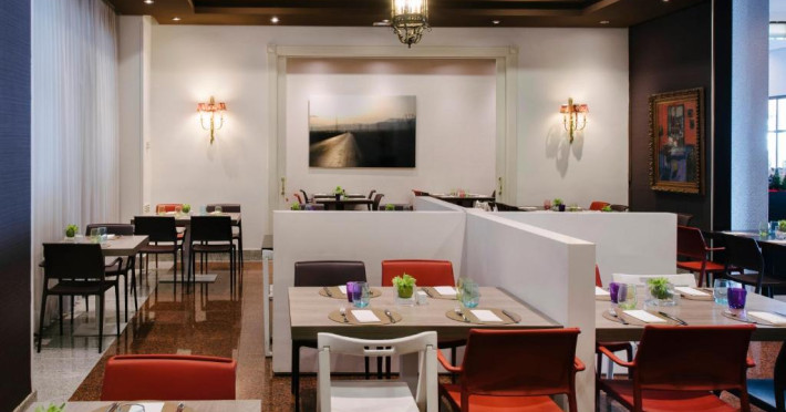 Rafaelhoteles Atocha, in stil contemporan, este plin de lucrări de artă impresionante, care vă oferă chef să vizitați galeriile din apropiere Reina Sofia, Prado și Thyssen-Bornemisza. După o zi de vizitare a obiectivelor turistice, vă puteți relaxa cu un cocktail răcoritor și o masă sub baldachin, in grădina plăcută de pe terasă. Există, de asemenea, un lounge confortabil unde vă puteți intalni cu prietenii și familia inainte de a vă bucura de viața de noapte vibrantă a orașului.