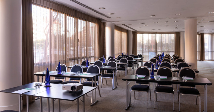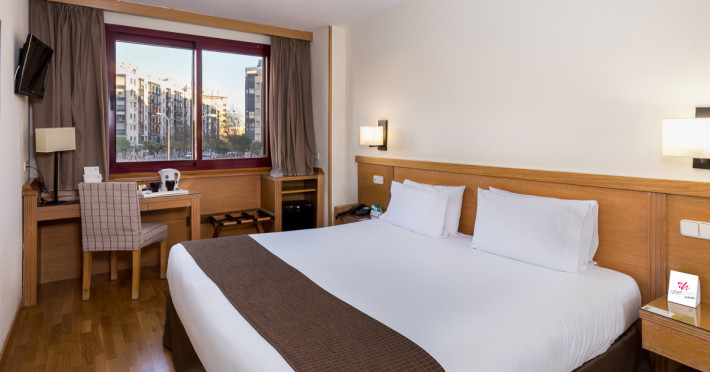 This hotel, friendly and luminous, is just a few metres from the Madrid Flea Market (El Rastro) and very close to the Palacio Real (Royal Palace), the Plaza Mayor (the Main City Square), the Madrid of the Habsburg Epoch or Madrid de las Austrias as it is popularly called and the important museum area known as Culture Mile. It is situated just 20 minutes from Barajas International Airport and with easy access to the M-30 and M-40 ring roads.||This popular hotel includes a total of 93 rooms spread over 5 floors, of which 84 are double rooms and 9 are suites. The reception is occupied 24-hours and there is also a safe for guests valuables as well as a lift. Other facilities include a café, a bar, a TV room, a restaurant, conference facilities, Internet access as well as a car park and a garage. Room and laundry services are also available.||The plush, welcoming rooms are en suite and fitted with a hairdryer. In addition, all rooms include a direct dial telephone, satellite/ cable TV, a hire safe, a radio, Internet access, a minibar/ fridge, a sitting area and central heating.||The nearest golf course is 16 km from the hotel. The nearest ski area is roughly 60 km away.||Guests are invited to serve themselves from the breakfast buffet..This hotel, friendly and luminous, is just a few metres from the Madrid Flea Market (El Rastro) and very close to the Palacio Real (Royal Palace), the Plaza Mayor (the Main City Square), the Madrid of the Habsburg Epoch or Madrid de las Austrias as it is popularly called and the important museum area known as Culture Mile. It is situated just 20 minutes from Barajas International Airport and with easy access to the M-30 and M-40 ring roads..The plush, welcoming rooms are en suite and fitted with a hairdryer. In addition, all rooms include a direct dial telephone, satellite/ cable TV, a hire safe, a radio, Internet access, a minibar/ fridge, a sitting area and central heating..Guests are invited to serve themselves from the breakfast buffet..The nearest golf course is 16 km from the hotel. The nearest ski area is roughly 60 km away..American Express, Diners Club, MasterCard and VISA cards are all accepted as methods of payment.Datorita dinamicitatii domeniului disponibilitatea ofertelor se modifica de la un moment la altul. De aceea ofertele sunt valabile in limita locurilor disponibile. Agentia nu este responsabila pentru eventualele neconcordante care pot aparea intre informatiile privind tarifele si alte detalii din site si informatiile primite in agentie. In aceste cazuri vor avea prioritate, intotdeauna, informatiile primite in agentie.