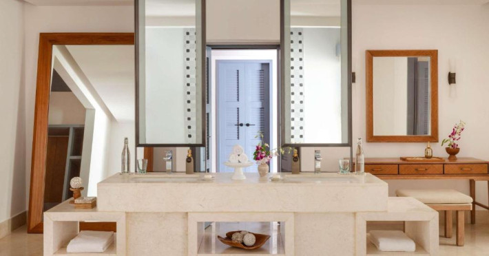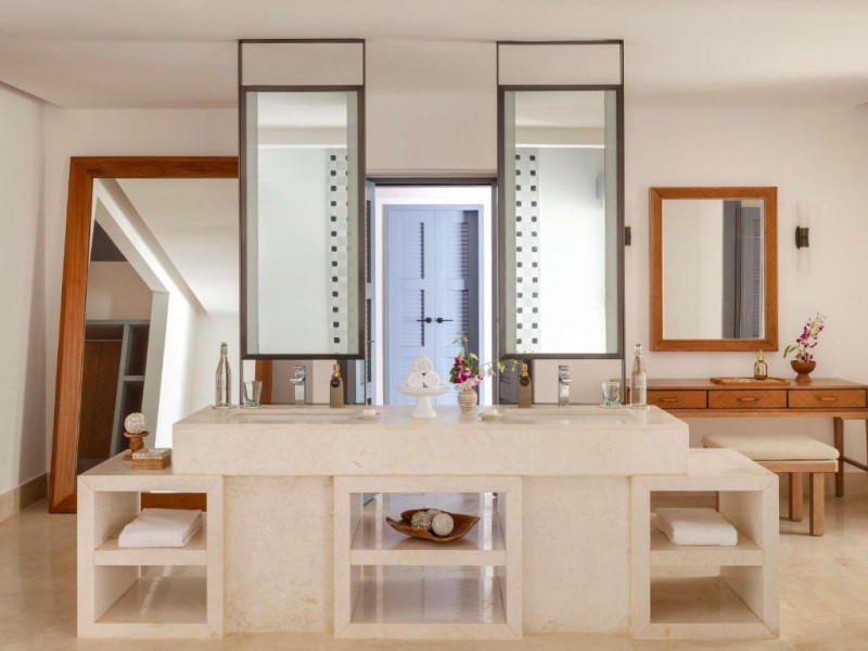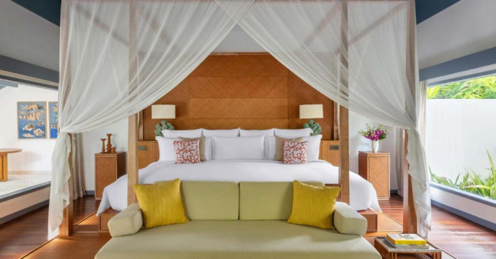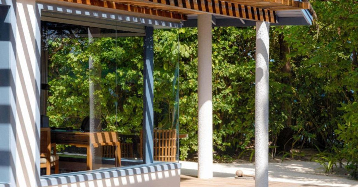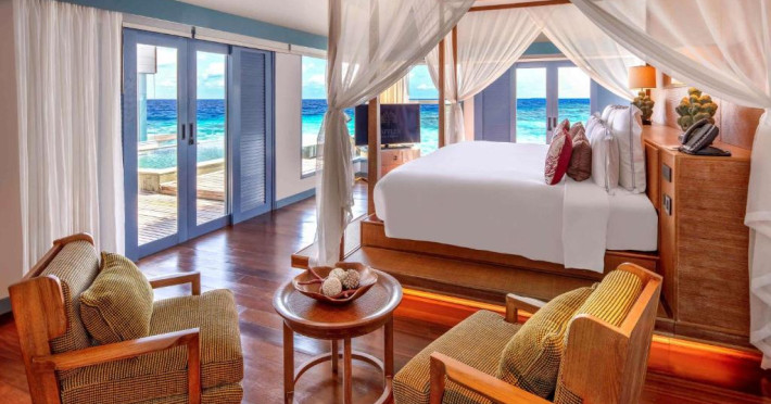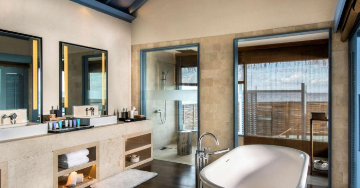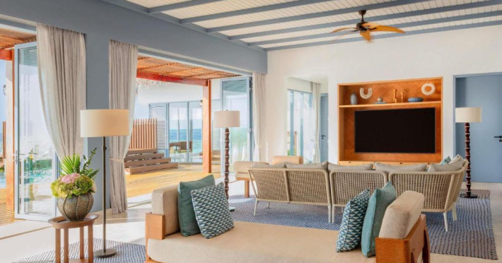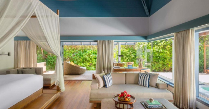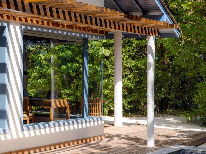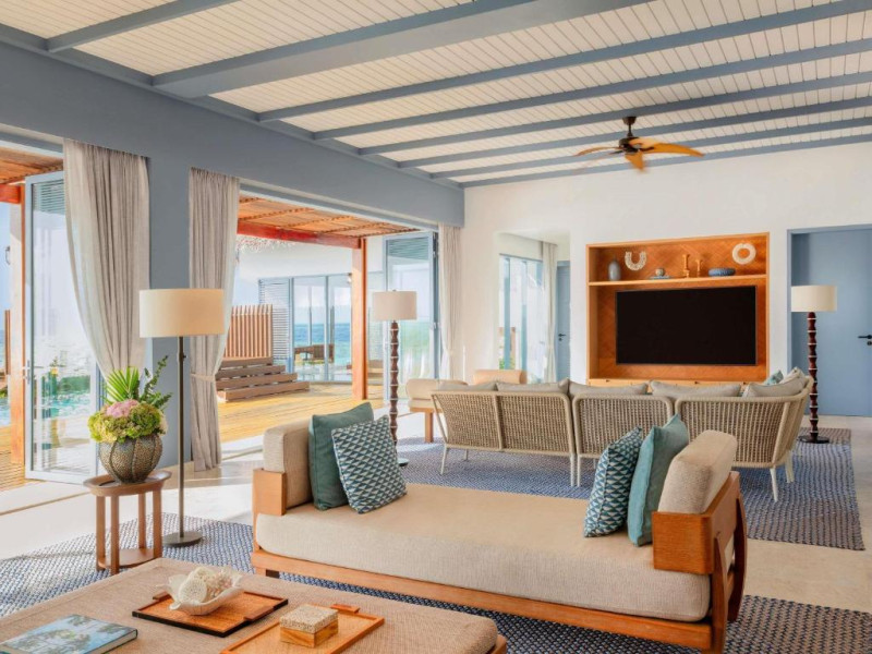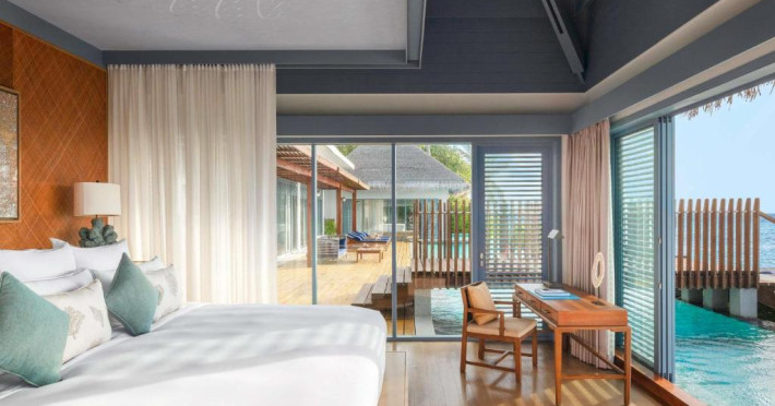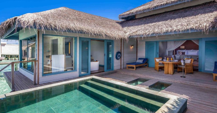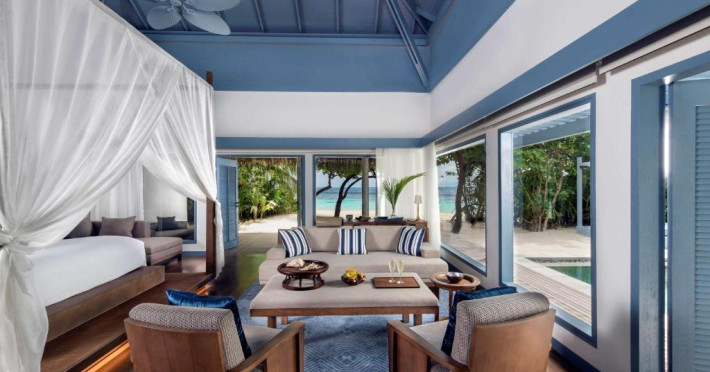 Resortul dispune de 21 de vile pe plajă și peste apă, fiecare fiind un sanctuar privat de lux cu piscină proprie și vedere panoramică spre ocean. Plaja privată cu nisip alb și fin se intinde de-a lungul intregii proprietăți, oferind un cadru perfect pentru relaxare.