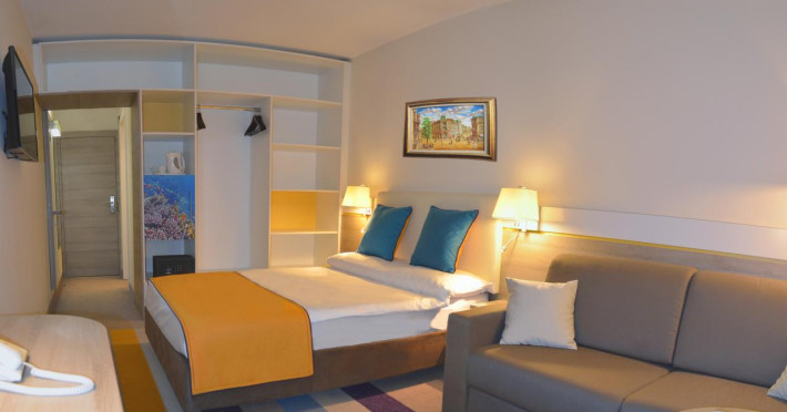 Complexul hotelier se evidentiaza prin varietatea serviciilor de care dispune si prin tarifele avantajoase atat pentru familii cu copii, cat si pentru grupurile de prieteni. Distanta fata de plaja este compensata prin varietatea posibilitatilor de distractie, dar si zona foarte linistita si pitoreasca in care se afla hotelul.Facilitati camere