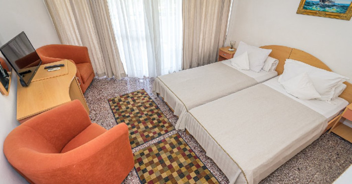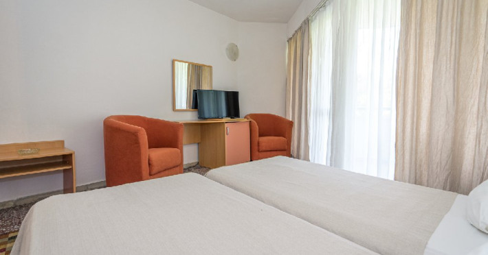 Dotari: aer conditionat, mini frigider, TV LCD, baie cu cabina de dus, cosmetice hoteliere, balcon cu mobilier de terasa.