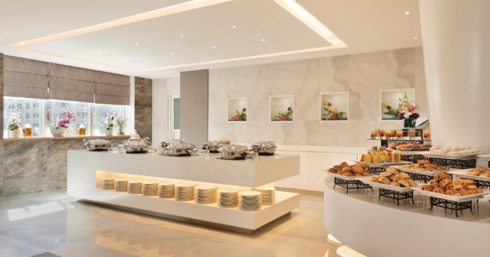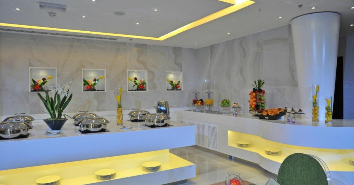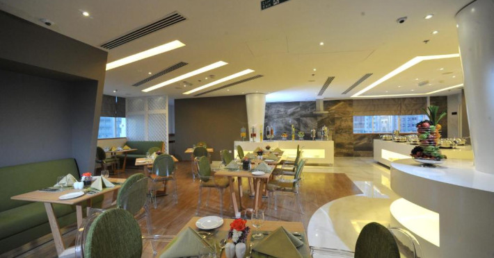 La Ramada By Wyndham Abu Dhabi Corniche oaspeții au la dispoziție 2 restaurante unde pot savura mâncăruri delicioase, în stil bufet sau à la carte. Preparate din bucătăria internațională așteaptă să fie degustate în fiecare zi. Masa poate fi servită atât în interior, cît si în aer liber, pe terasă, în funcție de vreme. În cadrul proprietății există și o cafenea care servește specialități din cafea și diverse delicatese.