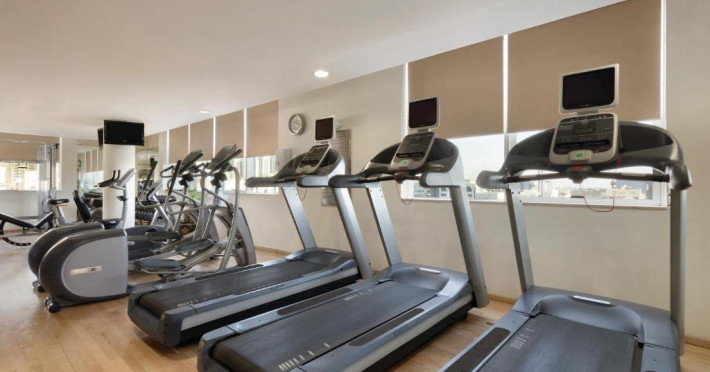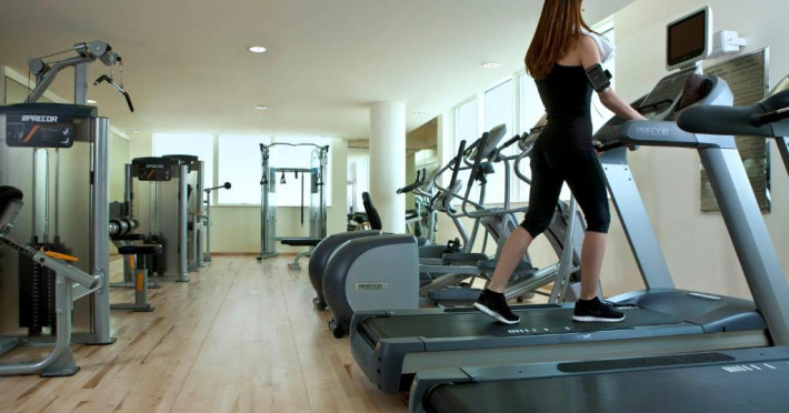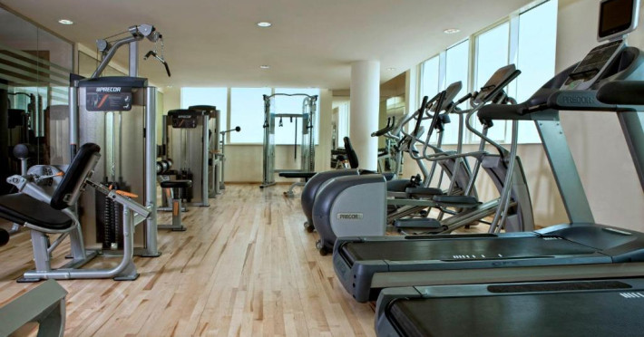 O sală de fitness cu echipamente necesare pentru o gamă variată de exerciții fizice este la dispoziția celor interesați.