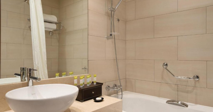 Ramada By Wyndham Abu Dhabi Downtown este o proprietate de 4 stele situată în Abu Dhabi, care oferă piscină în aer liber, terasă cu șezlonguri și umbrele, precum și facilități spa. Facilitățile de la Ramada By Wyndham Abu Dhabi Downtown includ sală de fitness și business center. Proprietatea are, de asemenea, servicii de recepție cu program non - stop și concierge. Se oferă acces gratuit la internet Wi-fi în spațiile publice. Parcarea este disponibilă la proprietate gratuit.
