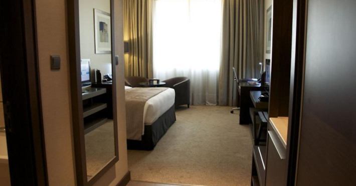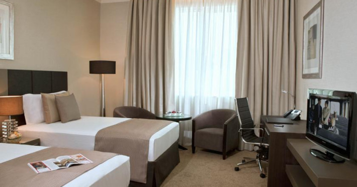Surrounded by the turquoise waters of the Persian Gulf and stunning views of the capital city, our Ramada Abu Dhabi Downtown hotel offers so much more than comfortable accommodations and world-class facilities. Located in the heart of Abu Dhabi, we are within walking distance of several businesses and attractions, and if you are flying into Abu Dhabi International Airport, we offer 24-hour shuttle service for a nominal fee. Our 111 spacious guestrooms include a mini-bar, flat-screen HDTV and plush bedding. Extensive leisure facilities include a fitness center, outdoor pool and sauna, and for blissful renewal, book an appointment for our spa treatments. Our fully equipped business center, free Wi-Fi Internet, and round-the-clock security are a sampling of the many amenities that make our hotel one of the best in Abu Dhabi.Surrounded by the turquoise waters of the Persian Gulf and stunning views of the capital city, our Ramada Abu Dhabi Downtown hotel offers so much more than comfortable accommodations and world-class facilities. Located in the heart of Abu Dhabi, we are within walking distance of several businesses and attractions, and if you are flying into Abu Dhabi International Airport, we offer 24-hour shuttle service for a nominal fee. Our 111 spacious guestrooms include a mini-bar, flat-screen HDTV and plush bedding. Extensive leisure facilities include a fitness center, outdoor pool and sauna, and for blissful renewal, book an appointment for our spa treatments. Our fully equipped business center, free Wi-Fi Internet, and round-the-clock security are a sampling of the many amenities that make our hotel one of the best in Abu Dhabi.