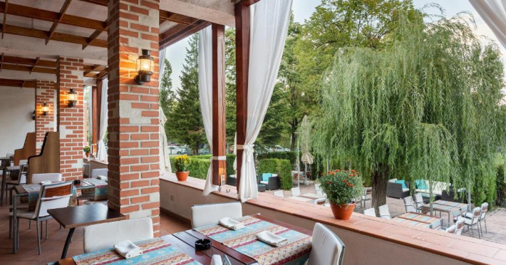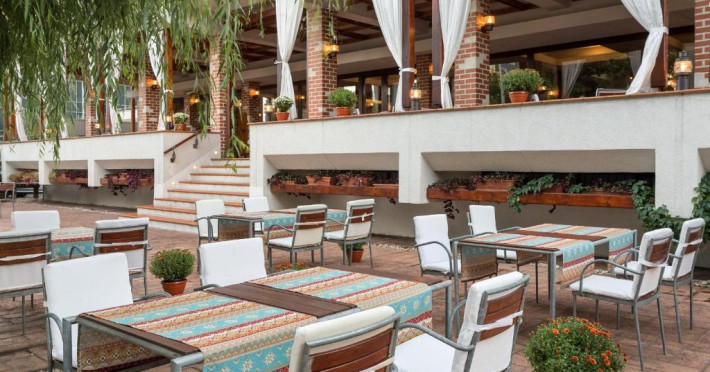 Restaurantul La Parc oferă preparate romanești și internaționale intr-un cadru tradițional, cu elemente moderne, și program live de divertisment, iar restaurantul Red Pepper oferă un meniu internațional variat. Meniul de pranz și cină include aperitiv, fel principal, o prăjitură și apă.