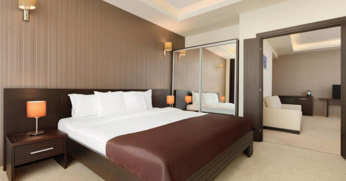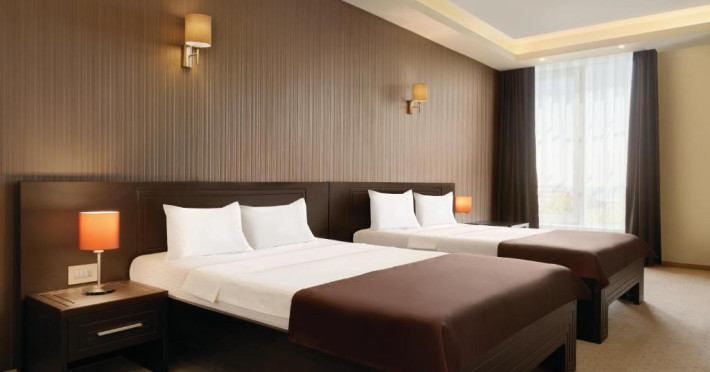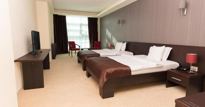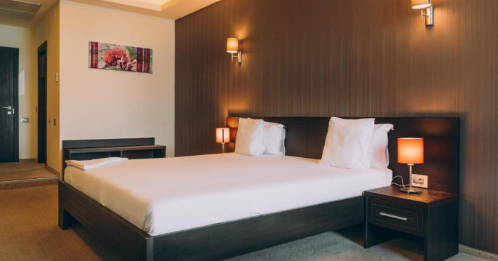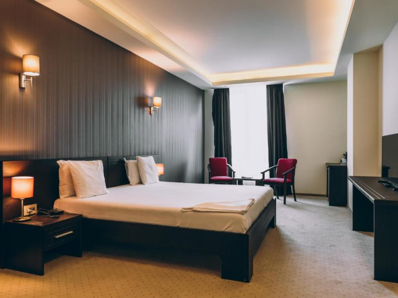 Facilități cameră dublă: pat matrimonial sau twin, baie proprie cu cadă sau duș, aer condiționat, televizor, telefon, uscător de păr, internet Wifi, minibar, seif.