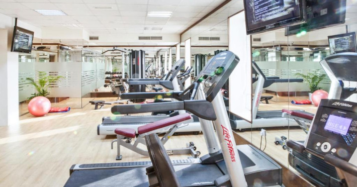 O sală de fitness cu echipamente necesare pentru o gamă variată de exerciții fizice este la dispoziția celor interesați.