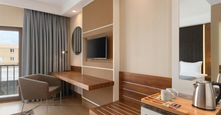 Ramada by Wyndham Istanbul Florya vă oferă camere cu aer condiționat, TV cu ecran plat cu canale prin satelit, facilități pentru prepararea de ceai/cafea și minibar. Se oferă acces gratuit la internet WiFi.