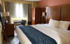 Camerele de la Ramada by Wyndham New York Times Square West au aparat de cafea, TV cu ecran plat și birou.