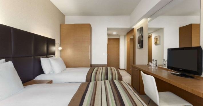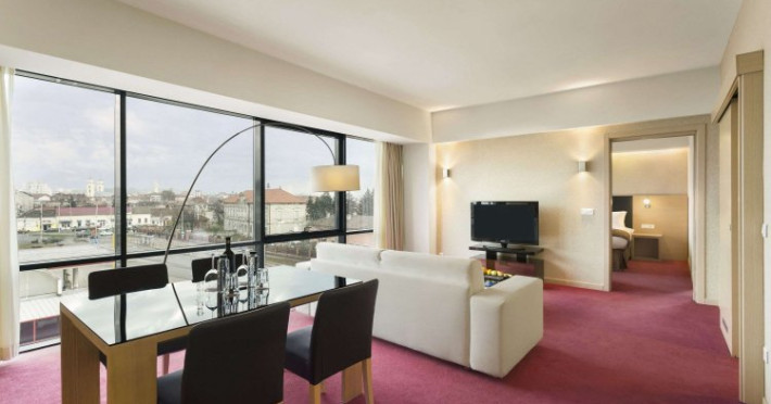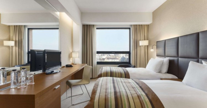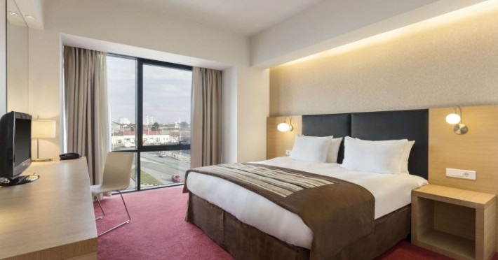 Good choice if youre looking forward to taking some rest at the hotel as much as to walking around the city. Hotel Ramada by Wyndham Oradea is located in Oradea. This hotel is located minutes away from the city center.Good choice if youre looking forward to taking some rest at the hotel as much as to walking around the city. Hotel Ramada by Wyndham Oradea is located in Oradea. This hotel is located minutes away from the city center.You can stop by the bar. Its time to have a nice meal! Stop by the restaurant. The hotel cafe is a nice place to have a snack. Free Wi-Fi on the territory will help you to stay on-line.If you travel by car, theres a parking zone. The beauty and wellness services: a massage room, a sauna, a spa center and a doctor. Sports fans are going to love a fitness center and a gym. Get ready for a fun and exciting vacation! Heres what you will find on the premises: a bowling club.Here, you can treat yourself with water procedures as there will be an aquapark, an indoor pool and an outdoor pool. You can arrange a business meeting, a board meeting, and even a job interview as there is a business center. There are playrooms for children at the hotel. They will be having so much fun that you might have to spend the evening with adults. To book an excursion, consult the tour assistance desk of the hotel.For the free movement around the city, the hotel offers a transfer for you. Accessibility: there is an elevator/lift. Additional services that the hotel offers to its guests: a laundry, dry cleaning, an ATM, ironing, press, car rental and a safe-deposit box. The staff of the hotel speaks English, Spanish and Italian.You can stop by the bar. Its time to have a nice meal! Stop by the restaurant. The hotel cafe is a nice place to have a snack. Free Wi-Fi on the territory will help you to stay on-line.If you travel by car, theres a parking zone. The beauty and wellness services: a massage room, a sauna, a spa center and a doctor. Sports fans are going to love a fitness center and a gym. Get ready for a fun and exciting vacation! Heres what you will find on the premises: a bowling club.Here, you can treat yourself with water procedures as there will be an aquapark, an indoor pool and an outdoor pool. You can arrange a business meeting, a board meeting, and even a job interview as there is a business center. There are playrooms for children at the hotel. They will be having so much fun that you might have to spend the evening with adults. To book an excursion, consult the tour assistance desk of the hotel.For the free movement around the city, the hotel offers a transfer for you. Accessibility: there is an elevator/lift. Additional services that the hotel offers to its guests: a laundry, dry cleaning, an ATM, ironing, press, car rental and a safe-deposit box. The staff of the hotel speaks English, Spanish and Italian.The room is warmly decorated and has everything you need to have a rest after a long eventful day. There is an alarm clock, a shower, a TV, a mini-bar, a bathrobe and slippers. The room equipment depends on its category.The room is warmly decorated and has everything you need to have a rest after a long eventful day. There is an alarm clock, a shower, a TV, a mini-bar, a bathrobe and slippers. The room equipment depends on its category..1 EUR not included 18 per guest per nightThe front desk is not open around the clock. In case of check-in after 11:30 PM, guests should inform the hotel in advance and get check-in instructions. Contact information can be found on the booking confirmation.Datorita dinamicitatii domeniului disponibilitatea ofertelor se modifica de la un moment la altul. De aceea ofertele sunt valabile in limita locurilor disponibile. Agentia nu este responsabila pentru eventualele neconcordante care pot aparea intre informatiile privind tarifele si alte detalii din site si informatiile primite in agentie. In aceste cazuri vor avea prioritate, intotdeauna, informatiile primite in agentie.