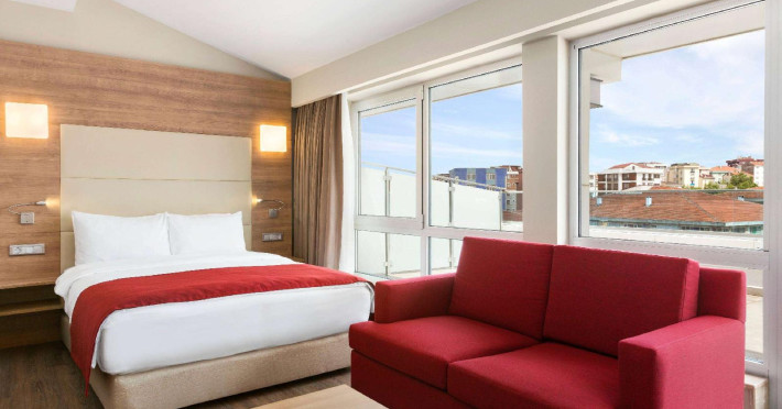 Facilities: The hotel has a lift and features 92 rooms. English- and German-speaking staff at the reception desk in the lobby are happy to answer any questions. Amenities include a baggage storage service, a safe and a currency exchange service. Wireless internet access is provided in public areas. The tour desk offers assistance with booking excursions. The hotel has a range of facilities for guests with disabilities. The hotel has wheelchair-accessible facilities. A number of shops, including a supermarket, are great for shopping or just browsing. Additional amenities include a newspaper stand, a TV room and a library. Guests arriving by car can park their vehicles in the garage or in the car park (no extra charge). Further services and facilities include a 24-hour security service, a babysitting service, a childcare service, a car hire service, a transfer service, room service, an alarm call service, a laundry service, a coin-operated laundry and a hotel shuttle bus. A bicycle hire service provides all the necessary equipment for exploring the surrounding area. Complimentary newspapers are available. The business centre is on hand for guests' business requirements and provides a fax machine.Optional fees: Fee for self-serve breakfast: approximately EUR 8 for adults and EUR 8 for children Airport shuttle fee: EUR 200 per room (one-way) Rollaway bed fee: EUR 10.0 per day The above list may not be comprehensive. Fees and deposits may not include tax and are subject to change. . Policies: No pets and no service animals are allowed at this property. Parking height restrictions apply. Contactless check-in and contactless check-out are available. . Instructions: Extra-person charges may apply and vary depending on property policy Government-issued photo identification and a credit card, debit card, or cash deposit may be required at check-in for incidental charges Special requests are subject to availability upon check-in and may incur additional charges; special requests cannot be guaranteed This property accepts credit cards; cash is not accepted Safety features at this property include a fire extinguisher, a security system, and a first aid kit This property affirms that it follows the cleaning and disinfection practices of Count on Us (Wyndham) . Special instructions: This property offers transfers from the airport (surcharges may apply). Guests must contact the property with arrival details before travel, using the contact information on the booking confirmation. Front desk staff will greet guests on arrival.. Check in from: 2:00 PM. . Check out: 12:00 PM.Facilities: The hotel has a lift and features 92 rooms. English- and German-speaking staff at the reception desk in the lobby are happy to answer any questions. Amenities include a baggage storage service, a safe and a currency exchange service. Wireless internet access is provided in public areas. The tour desk offers assistance with booking excursions. The hotel has a range of facilities for guests with disabilities. The hotel has wheelchair-accessible facilities. A number of shops, including a supermarket, are great for shopping or just browsing. Additional amenities include a newspaper stand, a TV room and a library. Guests arriving by car can park their vehicles in the garage or in the car park (no extra charge). Further services and facilities include a 24-hour security service, a babysitting service, a childcare service, a car hire service, a transfer service, room service, an alarm call service, a laundry service, a coin-operated laundry and a hotel shuttle bus. A bicycle hire service provides all the necessary equipment for exploring the surrounding area. Complimentary newspapers are available. The business centre is on hand for guests' business requirements and provides a fax machine.Optional fees: Fee for self-serve breakfast: approximately EUR 8 for adults and EUR 8 for children Airport shuttle fee: EUR 200 per room (one-way) Rollaway bed fee: EUR 10.0 per day The above list may not be comprehensive. Fees and deposits may not include tax and are subject to change. . Policies: No pets and no service animals are allowed at this property. Parking height restrictions apply. Contactless check-in and contactless check-out are available. . Instructions: Extra-person charges may apply and vary depending on property policy Government-issued photo identification and a credit card, debit card, or cash deposit may be required at check-in for incidental charges Special requests are subject to availability upon check-in and may incur additional charges; special requests cannot be guaranteed This property accepts credit cards; cash is not accepted Safety features at this property include a fire extinguisher, a security system, and a first aid kit This property affirms that it follows the cleaning and disinfection practices of Count on Us (Wyndham) . Special instructions: This property offers transfers from the airport (surcharges may apply). Guests must contact the property with arrival details before travel, using the contact information on the booking confirmation. Front desk staff will greet guests on arrival.. Check in from: 2:00 PM. . Check out: 12:00 PM.