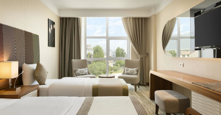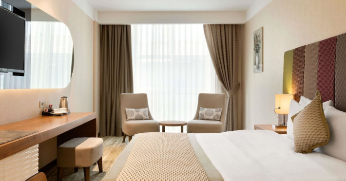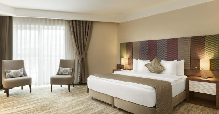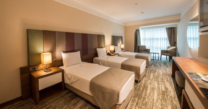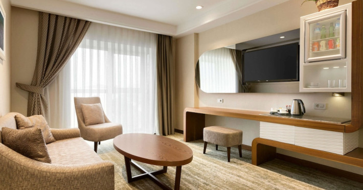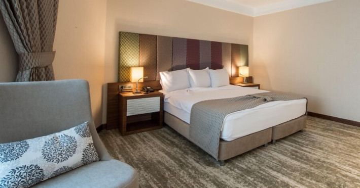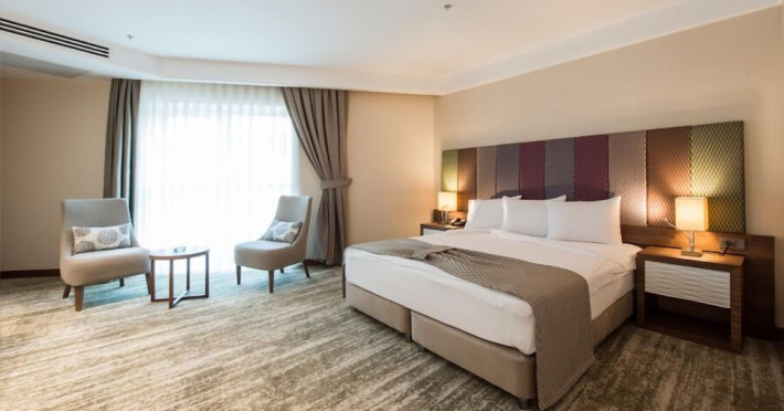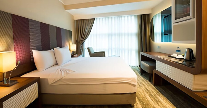 This charming hotel can be found in Bursa. The nearest public means of transportation are within walking distance from the accommodation. The nearest beach is within 10. 0 kilometre(s) from the hotel. There are a total of 74 accommodation units on the premises. This hotel was established in 2014. Customers may take advantage of the Wi-Fi connection on public areas. The front desk offers 24-hour reception. Those who dislike animals may enjoy their stay, as this hotel does not allow pets. Ramada Hotel Gemlik includes a garage ideal for guests use. Guests staying at this property can take advantage of the transfer service offered. Visitors may indulge in the health and wellness treatments available on the premises. There are business facilities and services for guests added convenience. Visitors dont need to leave the premises to enjoy a delicious meal, as the establishment includes a choice of delicious culinary options. Some services may be payable.Datorita dinamicitatii domeniului disponibilitatea ofertelor se modifica de la un moment la altul. De aceea ofertele sunt valabile in limita locurilor disponibile. Agentia nu este responsabila pentru eventualele neconcordante care pot aparea intre informatiile privind tarifele si alte detalii din site si informatiile primite in agentie. In aceste cazuri vor avea prioritate, intotdeauna, informatiile primite in agentie.