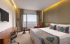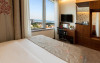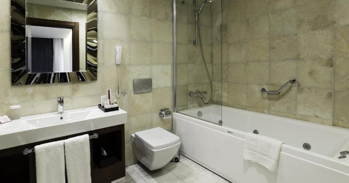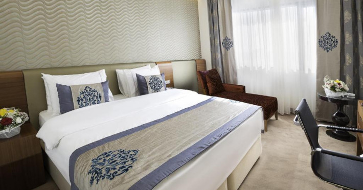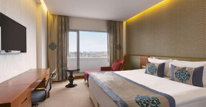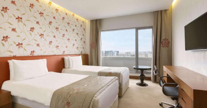 Camerele de la Ramada Hotel & Suites Istanbul - by Wyndham Atakoy sunt decorate cu gust, in culori calde și au podea cu mochetă și aer condiționat. Toate camerele includ TV cu ecran plat cu canale prin satelit, fierbător electric și WiFi gratuit. In plus, unele dintre camere au cadă spa.