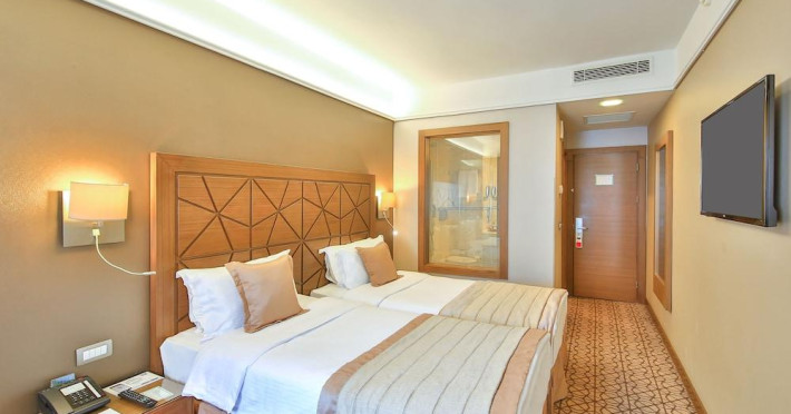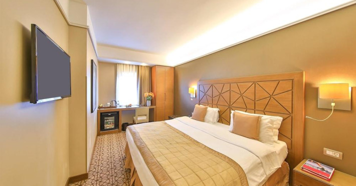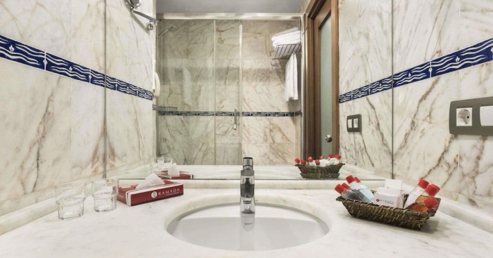 . Extra-person charges may apply and vary depending on property policy. Government-issued photo identification and a credit card, debit card, or cash deposit may be required at check-in for incidental charges. Special requests are subject to availability upon check-in and may incur additional charges; special requests cannot be guaranteed. The name on the credit card used at check-in to pay for incidentals must be the primary name on the guestroom reservation. This property accepts credit cards; cash is not accepted. Safety features at this property include a carbon monoxide detector, a fire extinguisher, and a smoke detector. .Optional: Fee for buffet breakfast: approximately EUR 15 per personAirport shuttle fee: EUR 45 per room (one-way)Nearby parking fee: EUR 15 per day The above list may not be comprehensive. Fees and deposits may not include tax and are subject to change. . Pool access available from 10 AM to 10 PM. Children 11 years old and younger are not permitted at this property. Only registered guests are allowed in the guestrooms. Contactless check-in and contactless check-out are available. .Service animals are allowed. Service animals are exempt from fees/restrictions. Pets not allowed.This property offers transfers from the cruise terminal, ferry terminal, airport, and train station (surcharges may apply). To arrange pick-up, guests must contact the property 24 hours prior to arrival, using the contact information on the booking confirmation. Front desk staff will greet guests on arrival at the property.. Professional property host/manager. Contactless check-out is available. No cribs (infant beds) available. Children not allowed. Contactless check-in is available.Visa, Diners Club, Debit cards not accepted, Cash not accepted, Discover, American Express, JCB International, Mastercard, UnionPay.Enjoy a meal at the restaurant or snacks in the coffee shop/cafe. The hotel also offers 24-hour room service. Mingle with other guests at the complimentary reception, held daily. Unwind at the end of the day with a drink at the bar/lounge or the poolside bar. Buffet breakfasts are served on weekdays from 7:00 AM to 10:00 AM and on weekends from 7 AM to 10:30 AM for a fee..Featured amenities include a 24-hour business center, limo/town car service, and complimentary newspapers in the lobby. Planning an event in Istanbul? This hotel has 1399 square feet (130 square meters) of space consisting of conference space and 4 meeting rooms. For a surcharge, guests may use a roundtrip airport shuttle (available 24 hours) and a cruise ship terminal shuttle..Make yourself at home in one of the 101 air-conditioned rooms featuring iPod docking stations and minibars. 40-inch LCD televisions with satellite programming provide entertainment, while complimentary wireless internet access keeps you connected. Private bathrooms with bathtubs or showers feature spring water baths and designer toiletries. Conveniences include phones, as well as safes and desks..Distances are displayed to the nearest 0.1 mile and kilometer. . Taksim Square - 0.5 km / 0.3 mi . Istiklal Avenue - 0.6 km / 0.4 mi . Vodafone Park - 0.9 km / 0.5 mi . Istanbul Congress Center - 0.9 km / 0.6 mi . Lutfi Kirdar Convention and Exhibition Centre - 1.1 km / 0.7 mi . Dolmabahçe Palace - 1.1 km / 0.7 mi . Bosphorus - 1.4 km / 0.9 mi . Galataport - 1.6 km / 1 mi . Pera Palace Hotel - 1.9 km / 1.2 mi . American Hospital - 2.1 km / 1.3 mi . Istanbul Museum of Modern Art - 2.2 km / 1.3 mi . Besiktas Pier - 2.3 km / 1.4 mi . Galata Tower - 2.3 km / 1.4 mi . Golden Horn - 2.4 km / 1.5 mi . Istanbul Cruise Ship Terminal - 2.6 km / 1.6 mi . The nearest airports are:. Istanbul Sabiha Gokcen Intl. Airport (SAW) - 62.1 km / 38.6 mi. Istanbul Airport (IST) - 39.4 km / 24.5 mi. The preferred airport for Ramada by Wyndham Istanbul Taksim is Istanbul Airport (IST). .Near Taksim Square.Business property, Spa, Business, City, Spa property. Extra-person charges may apply and vary depending on property policy. Government-issued photo identification and a credit card, debit card, or cash deposit may be required at check-in for incidental charges. Special requests are subject to availability upon check-in and may incur additional charges; special requests cannot be guaranteed. The name on the credit card used at check-in to pay for incidentals must be the primary name on the guestroom reservation. This property accepts credit cards; cash is not accepted. Safety features at this property include a carbon monoxide detector, a fire extinguisher, and a smoke detector. .Optional: Fee for buffet breakfast: approximately EUR 15 per personAirport shuttle fee: EUR 45 per room (one-way)Nearby parking fee: EUR 15 per day The above list may not be comprehensive. Fees and deposits may not include tax and are subject to change. . Pool access available from 10 AM to 10 PM. Children 11 years old and younger are not permitted at this property. Only registered guests are allowed in the guestrooms. Contactless check-in and contactless check-out are available. .Service animals are allowed. Service animals are exempt from fees/restrictions. Pets not allowed.This property offers transfers from the cruise terminal, ferry terminal, airport, and train station (surcharges may apply). To arrange pick-up, guests must contact the property 24 hours prior to arrival, using the contact information on the booking confirmation. Front desk staff will greet guests on arrival at the property.. Professional property host/manager. Contactless check-out is available. No cribs (infant beds) available. Children not allowed. Contactless check-in is available.Visa, Diners Club, Debit cards not accepted, Cash not accepted, Discover, American Express, JCB International, Mastercard, UnionPay.Enjoy a meal at the restaurant or snacks in the coffee shop/cafe. The hotel also offers 24-hour room service. Mingle with other guests at the complimentary reception, held daily. Unwind at the end of the day with a dr