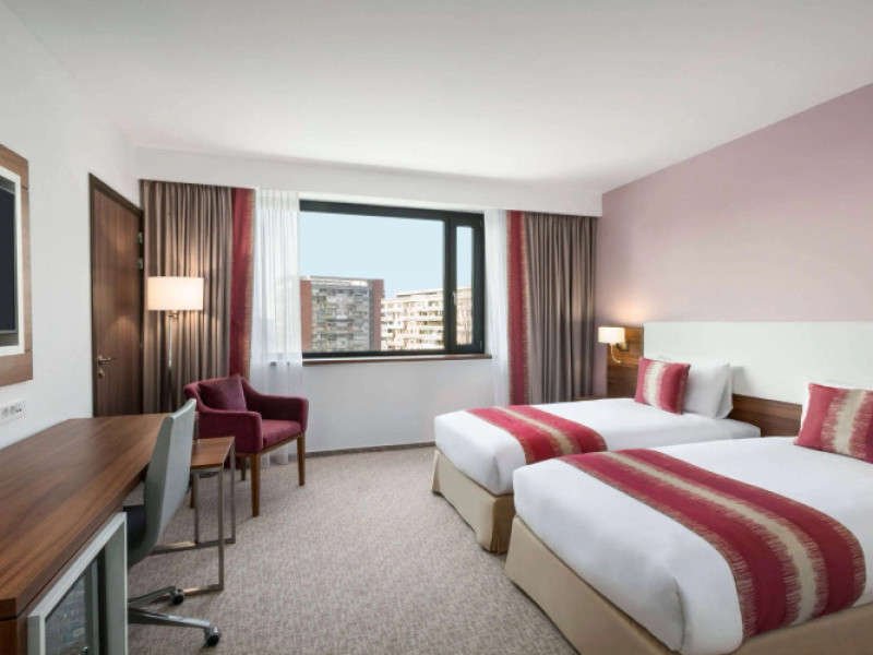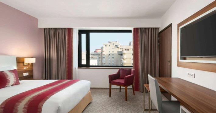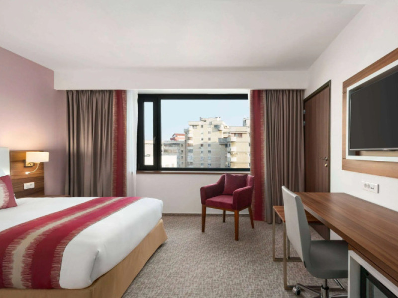 Your vacation should be comfortable! Hotel Ramada Plaza by Wyndham Craiova is located in Craiova. This hotel is located in the very center of the city. Before going to bed, you can walk around the main landmarks of the city.Your vacation should be comfortable! Hotel Ramada Plaza by Wyndham Craiova is located in Craiova. This hotel is located in the very center of the city. Before going to bed, you can walk around the main landmarks of the city.Spend an evening in a nice atmosphere of the bar. Its time to have a nice meal! Stop by the restaurant. Want to be always on-line? Wi-Fi is available. Specially for tourists who travel by car, theres a parking zone.Also, the following services are available for guests at the hotel: a massage room, a sauna, a steam bath, a spa center and a doctor. Sports fans are going to love a fitness center, a gym and a yoga area. You wont be bored as at the hotel you will find a casino. Here, you can treat yourself with water procedures as there will be a pool, an indoor pool and an outdoor pool.For participants of business meetings, there is a conference hall. Children will be happy, there is a playroom for them. Want to have an excursion? Consult the tour assistance desk of the hotel. Pets are welcome here.If you want to make your journey even more comfortable, you can order a transfer. Accessible for guests with disabilities: the elevator helps them to go to the highest floors. At the guests disposal, theres also a laundry, dry cleaning, an ATM, ironing, press, a safe-deposit box and a concierge. The staff of the hotel speaks English, Spanish, Italian, German and French.Spend an evening in a nice atmosphere of the bar. Its time to have a nice meal! Stop by the restaurant. Want to be always on-line? Wi-Fi is available. Specially for tourists who travel by car, theres a parking zone.Also, the following services are available for guests at the hotel: a massage room, a sauna, a steam bath, a spa center and a doctor. Sports fans are going to love a fitness center, a gym and a yoga area. You wont be bored as at the hotel you will find a casino. Here, you can treat yourself with water procedures as there will be a pool, an indoor pool and an outdoor pool.For participants of business meetings, there is a conference hall. Children will be happy, there is a playroom for them. Want to have an excursion? Consult the tour assistance desk of the hotel. Pets are welcome here.If you want to make your journey even more comfortable, you can order a transfer. Accessible for guests with disabilities: the elevator helps them to go to the highest floors. At the guests disposal, theres also a laundry, dry cleaning, an ATM, ironing, press, a safe-deposit box and a concierge. The staff of the hotel speaks English, Spanish, Italian, German and French.Guests will find the following in the room: an alarm clock, a shower, a TV, a mini-bar, a bathrobe and slippers. The room equipment depends on its category.Guests will find the following in the room: an alarm clock, a shower, a TV, a mini-bar, a bathrobe and slippers. The room equipment depends on its category..1 RON not included 90 per guest per night.RON not included unspecified 45 per guest per stay KNOW BEFORE YOU GO * Reservations are required for massage services and spa treatments. Reservations can be made by contacting the hotel prior to arrival, using the contact information on the booking confirmation. * The property has connecting/adjoining rooms, which are subject to availability and can be requested by contacting the property using the number on the booking confirmation. FEES The following fees and deposits are charged by the property at time of service, check-in, or check-out. * Pet fee: RON 45 per pet, per night * Rollaway bed fee: RON 90.0 per night * Spa fee: RON 35 per day The above list may not be comprehensive. Fees and deposits may not include tax and are subject to change. MANDATORY FEES AND TAXES Youll be asked to pay the following charges at the property: * A 1 percent city/local tax will be charged We have included all charges provided to us by the property. However, charges can vary, for example, based on length of stay or the room you book.
