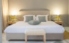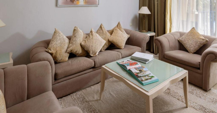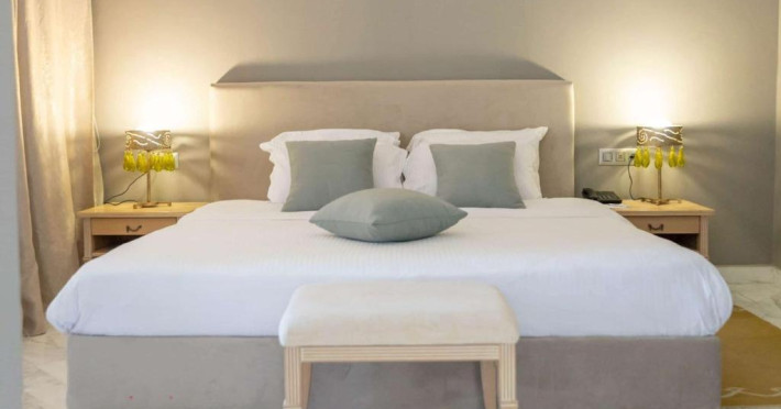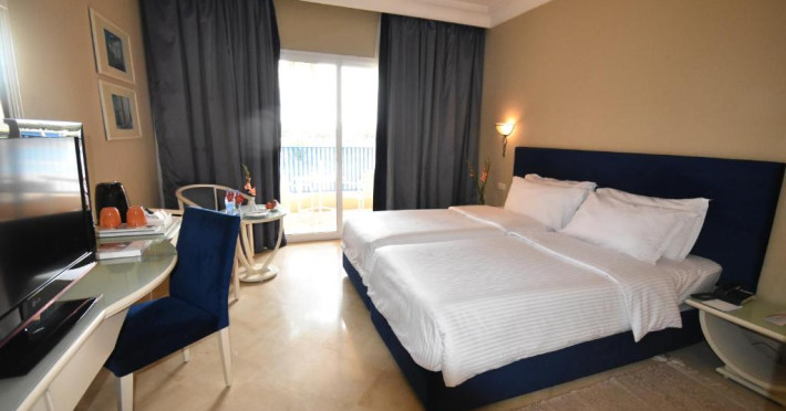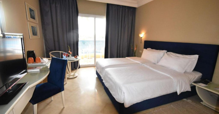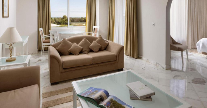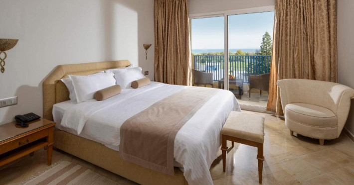 Camerele sunt decorate in stil mediteranean și sunt dotate cu aer condiționat, TV prin satelit și balcon, majoritatea oferind vederi spre mare sau spre grădinile resortului.