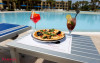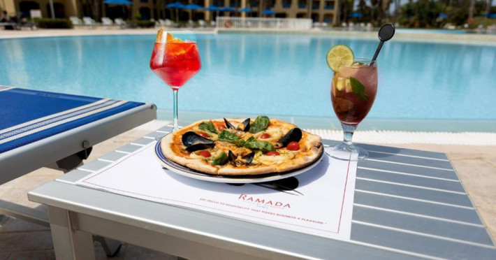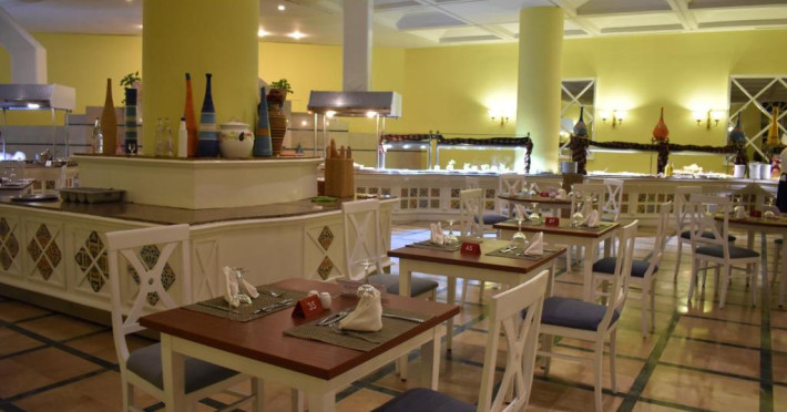 Restaurantul principal servește preparate internaționale și specialități locale, iar barul de la piscină oferă răcoritoare și cocktailuri pe tot parcursul zilei. Pentru momentele de relaxare, hotelul pune la dispoziție un teren de tenis, facilități pentru sporturi acvatice și un program de animație variat.