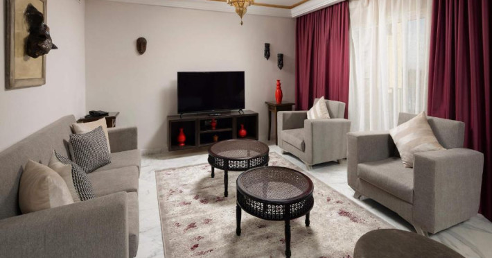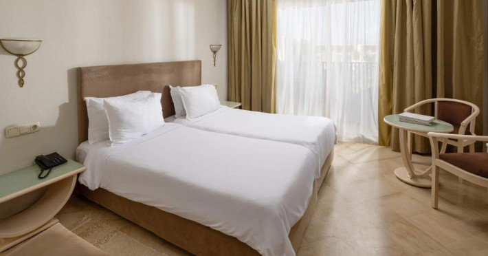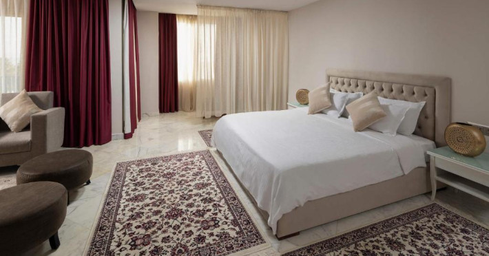 Oaspeții se pot bucura de plaja privată cu nisip fin, aflată la doar cațiva pași de hotel, unde sunt disponibile șezlonguri și umbrele. Complexul dispune de 3 piscine exterioare, inclusiv una pentru copii, precum și de un centru spa cu hammam tradițional tunisian.
