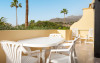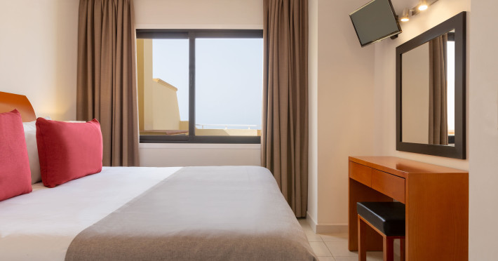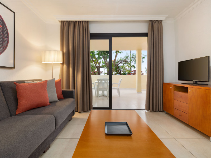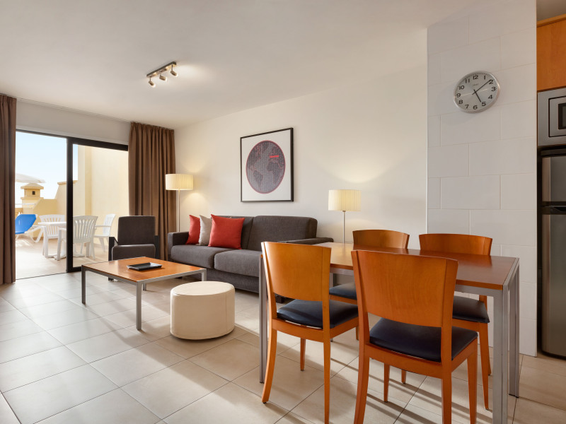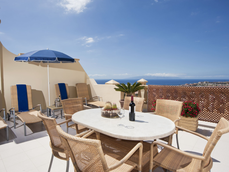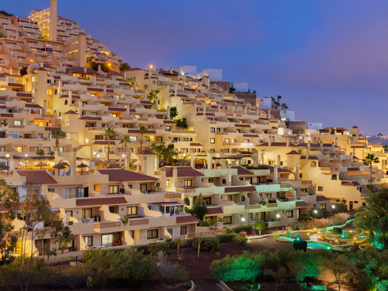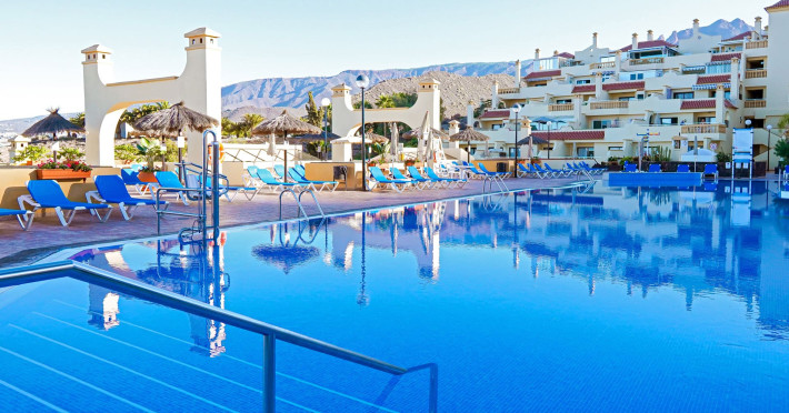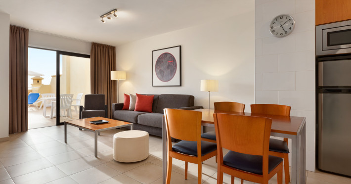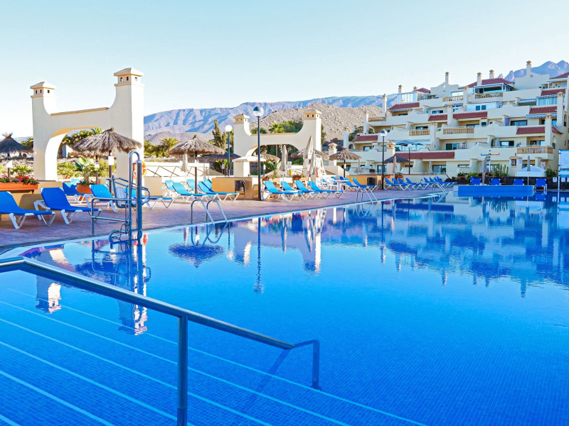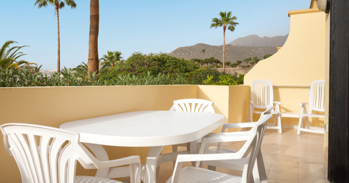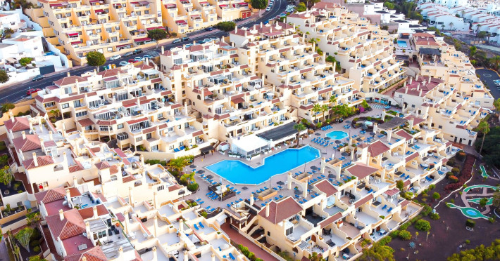 Around 2 km from a beach and approximately 1 km from the sea lies the apart hotel Ramada Residences by Wyndham Costa Adeje. The nearest restaurants and bars can be found within 4 km. The old town is around 5 km away. The nearest shops you can reach within around 4 km, a supermarket is around 1 km away. The beach is patrolled by a lifeguard. The GPS-verified hotel is equipped with a 24h reception (check-in is possible around the clock), a lobby, Wi-Fi, internet access, 10 lifts, a supermarket, a jacuzzi, a first aid kit, parking spaces (limited) as well as a TV lounge with satellite TV. In the outdoor area of the property you will find a garden as well as a seasonally heated pool, where sun loungers, sun umbrellas and pool towels are available for free. There is also a separate children's pool. Furthermore, you can relax outdoors on the sun terrace. In addition, the hotel Ramada Residences by Wyndham Costa Adeje is video-monitored 24h a day. For the young hotel guests there is a playground. For very young guests, kid`s chairs, highchairs and cots can also be provided. You can store your luggage in the hotel's storage room. There is also a laundry service. The energy supply is 220 Volts. At the hotel reception, tickets are offered for excursions in the area. Smoking is permitted in the hotel. For guests on their honeymoon, the hotel has special offers such as champagne or sparkling wine in the room. In your hotel, a lot of focus is placed on sustainability. This includes among others the hotel`s own recycling bins. The hotel requires that all guests pay a deposit upon arrival. American Express, Euro/Master Card, Travellers checks and EC cards are accepted as means of payment. Due to its barrier-free facilities , such as wheelchair accessible rooms and wheelchair-accessible bathrooms, the hotel is also suitable for wheelchair users. Catering As catering services the hotel offers half board, full board, breakfast only and self-catering. Breakfast is offered continental or à la carte (extras on request). Lunch and dinner are also served as a set meal or à la carte (extras on request and at extra cost). For the meals, there are a restaurant with terrace (vegetarian dishes) and a bar, the cafeteria as well as the pool bar. Distances
