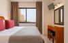 Around 2 km from a beach and approximately 1 km from the sea lies the apart hotel Ramada Residences by Wyndham Costa Adeje. The nearest restaurants and bars can be found within 4 km. The old town is around 5 km away. The nearest shops you can reach within around 4 km, a supermarket is around 1 km away. The beach is patrolled by a lifeguard. The GPS-verified hotel is equipped with a 24h reception (check-in is possible around the clock), a lobby, Wi-Fi, internet access, 10 lifts, a supermarket, a jacuzzi, a first aid kit, parking spaces (limited) as well as a TV lounge with satellite TV. In the outdoor area of the property you will find a garden as well as a seasonally heated pool, where sun loungers, sun umbrellas and pool towels are available for free. There is also a separate children's pool. Furthermore, you can relax outdoors on the sun terrace. In addition, the hotel Ramada Residences by Wyndham Costa Adeje is video-monitored 24h a day. For the young hotel guests there is a playground. For very young guests, kid`s chairs, highchairs and cots can also be provided. You can store your luggage in the hotel's storage room. There is also a laundry service. The energy supply is 220 Volts. At the hotel reception, tickets are offered for excursions in the area. Smoking is permitted in the hotel. For guests on their honeymoon, the hotel has special offers such as champagne or sparkling wine in the room. In your hotel, a lot of focus is placed on sustainability. This includes among others the hotel`s own recycling bins. The hotel requires that all guests pay a deposit upon arrival. American Express, Euro/Master Card, Travellers checks and EC cards are accepted as means of payment. Due to its barrier-free facilities , such as wheelchair accessible rooms and wheelchair-accessible bathrooms, the hotel is also suitable for wheelchair users. Catering As catering services the hotel offers half board, full board, breakfast only and self-catering. Breakfast is offered continental or à la carte (extras on request). Lunch and dinner are also served as a set meal or à la carte (extras on request and at extra cost). For the meals, there are a restaurant with terrace (vegetarian dishes) and a bar, the cafeteria as well as the pool bar. Distances- Discotheque: approx. 4 km