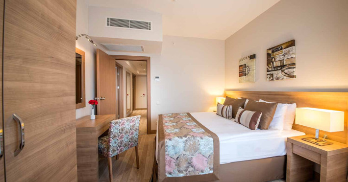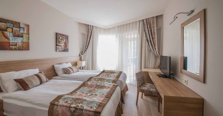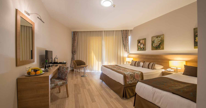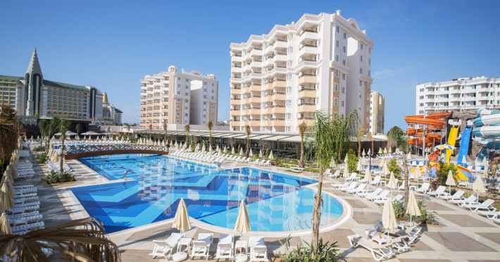 Hotelul este situat in statiunea Lara, la 14 km de aeroportul din Antalya si la 9 km de centrul orasului Antalya. Hotelul a fost deschis in 2013 si este compus din 4 cladiri cu 7 si 8 etaje. Camerele sunt dotate modern cu baie cu dus, uscator de par, aer conditionat, televizor, telefon, minibar, seif, balcon, room service (contra cost), internet Wi-Fi. Pe langa restaurantul principal hotelul mai detine si restaurante a la carte cu specific italian, otoman si pescaresc. Plaja este peste drum de proprietate la 330 m si este o plaja cu nisip dotata cu sezlonguri, umbrele de soare si baldachine (contra cost). Piscina dispune de un bar care serveste diferite bauturi racoritoare si gustari. Copii au acces la o piscina exterioara, topogane, mini-club si bona (contra cost). Alte activitati disponibile la hotel sunt: sauna, masaj, baie turceasca, fitness, aerobic, darts, biliard, sporturi nautice.Localizare