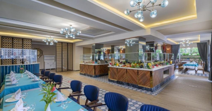Facilitati hotel: Hotelul pune la dispozitia turistilor: receptie 24h, restaurant, piscina, gradina, baie turceasca, sauna, masaj, centru fitness, miniclub pentru copii, loc de joaca pentru copii, aqua park, biliard, tenis de masa, darts, serviciu rent a car, sezlonguri si umbrele.