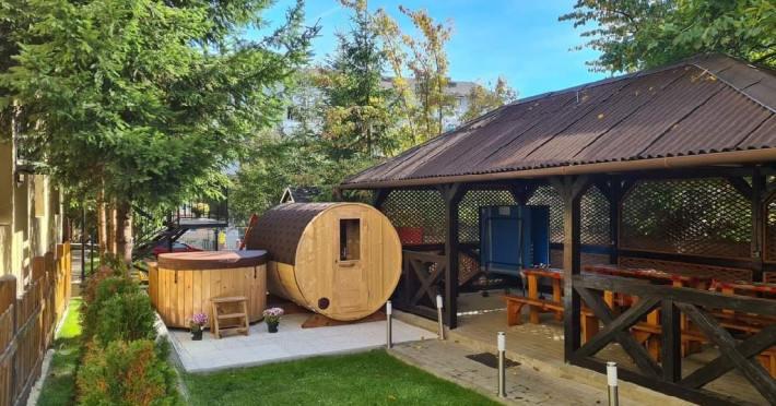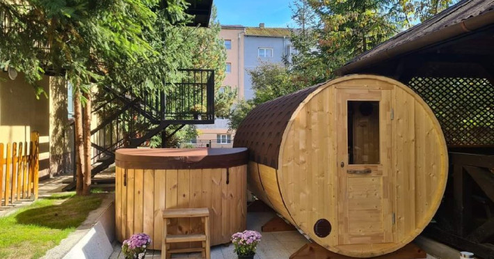 De asemenea, turistii au la dispozitie sauna si ciubar cu aeromasaj.