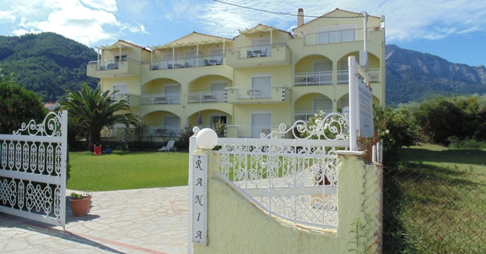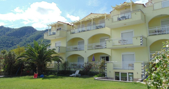 Situat in Skala Potamia la doar 50 m fata de mare si 300 m de centrul statiunii. Este o unitate de cazare recomandata in special familiilor cu copii avand studiouri si apartamente spatioase cat si gradina , foisor si loc de joaca pentru cei mici.