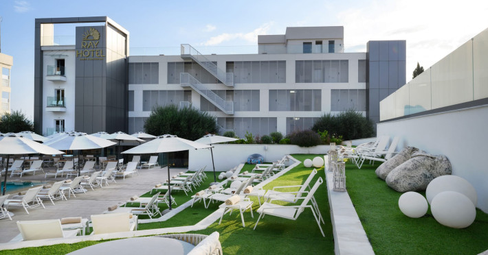 Welcome to Ray Hotel, an exquisite new luxury destination featuring 61 elegantly designed rooms and 11 deluxe villa suites. Nestled on the eastern shores of Corfu's Perama Bay, this unique haven offers a natural paradise perfect for peaceful and enjoyable relaxation.At Ray Hotel, guests are invited to unwind in a tranquil beachside retreat at the heart of Corfu. Enjoy the captivating turquoise outdoor pool and the spectacular infinity pool, both offering stunning views of the Ionian Sea. Immerse yourself in this serene setting and create unforgettable memories in a true Mediterranean sanctuary.Welcome to Ray Hotel, an exquisite new luxury destination featuring 61 elegantly designed rooms and 11 deluxe villa suites. Nestled on the eastern shores of Corfu's Perama Bay, this unique haven offers a natural paradise perfect for peaceful and enjoyable relaxation.At Ray Hotel, guests are invited to unwind in a tranquil beachside retreat at the heart of Corfu. Enjoy the captivating turquoise outdoor pool and the spectacular infinity pool, both offering stunning views of the Ionian Sea. Immerse yourself in this serene setting and create unforgettable memories in a true Mediterranean sanctuary.