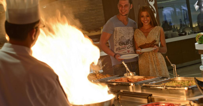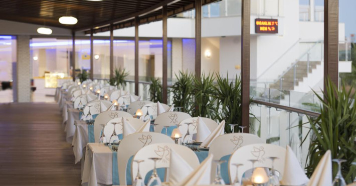 La Raymar Hotels oaspeții au la dispoziție 4 restaurante unde pot savura mâncăruri delicioase, în stil bufet sau à la carte. Preparate din bucătăria internațională și turcească așteaptă să fie degustate în fiecare zi la micul dejun, prânz și cină. Masa poate fi servită atât în interior, cît si în aer liber, pe terasă, în funcție de vreme. 6 baruri, dintre care unul la piscină, sunt disponibile cu o ofertă variată de băuturi răcoritoare și alcoolice. În cadrul proprietății există și un snack bar care servește băuturi și gustări.