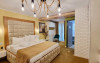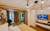 - Amyntas deluxe - Diferenta fata de camerele premium consta in dimensiunile terasei, cele deluxe avand un balcon cu vedere catre port si apus. Dimensiunea balconului este de aproape 3 mp, iar camera are o dimensiune de 17 mp.