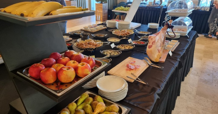 Restaurantul are o capacitate de aproximativ 150 de persoane, este modern, cu mobilier de calitate. Micul dejun este servit in regim bufet suedez, celelalte mese fiind servite in regim a la carte.