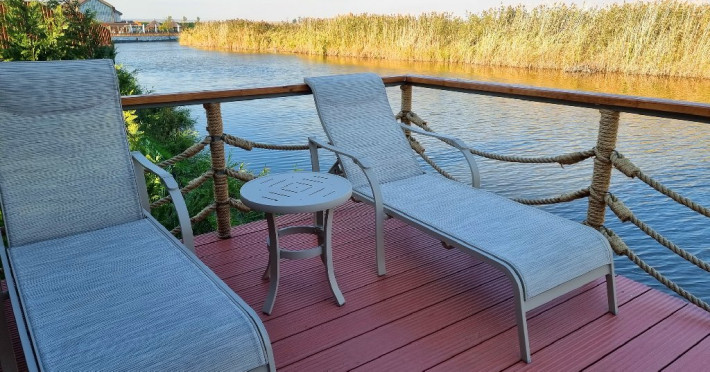 - Amyntas Premium - Camera de tip premium, avand o terasa generoasa cu canapele, fotolii si masa, de unde se poate admira rasaritul Deltei continentale, pat matrimonial. Dimensiunea camerei este de 19 mp.