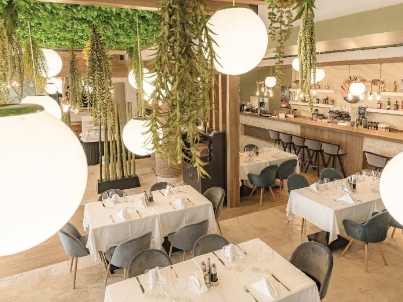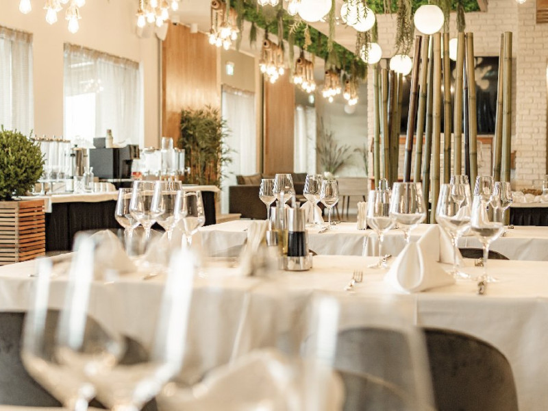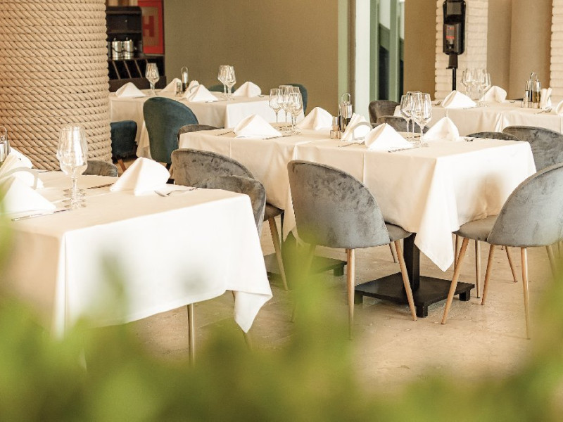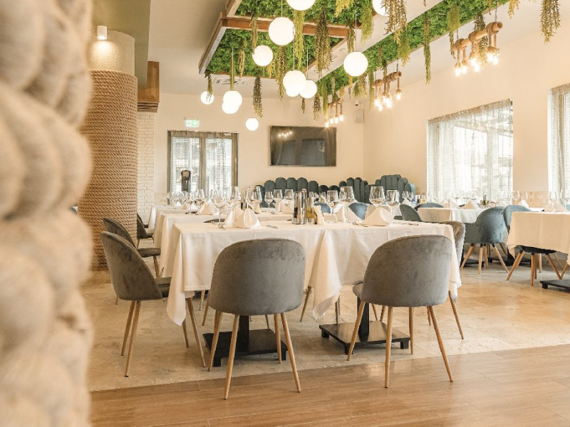 Mesele se servesc in restaurant sau pe terasa Argead.