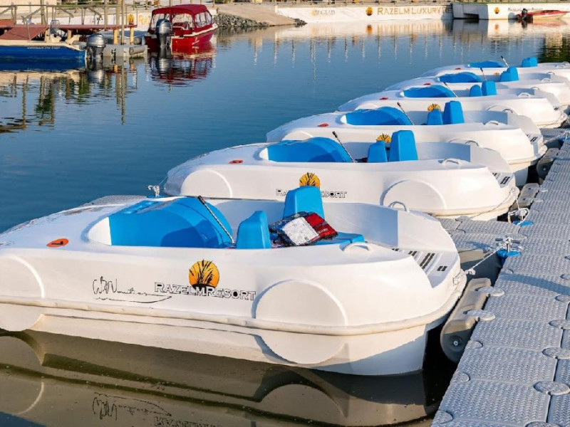 Resortul dispune de restaurant cu terasa, piscina exterioara, sala de fitness, loc de joaca pentru copii, posibilitatea de plimbare cu hidrobicicleta, plimbare cu caiacul, plimbare cu bicicleta, pescuit, teren de fotbal si baschet, sala de conferinta, parcare.