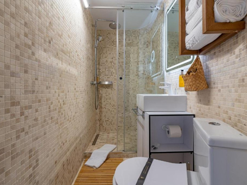 Amyntas Deluxe are o suprafata de 18 mp si dispune de un pat matrimonial, balcon cu vedere catre port si marina.