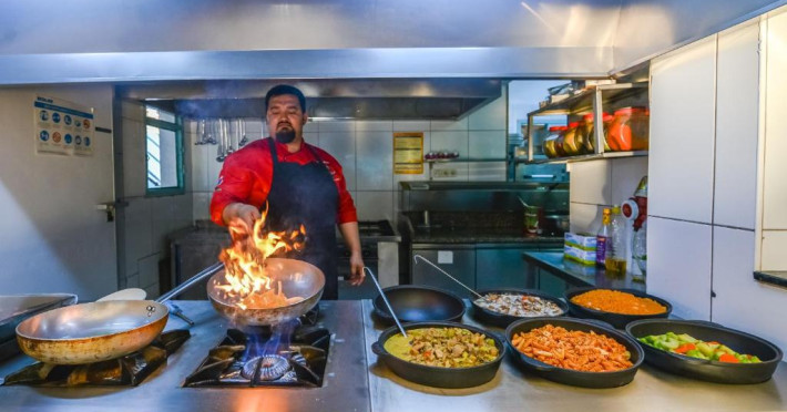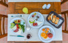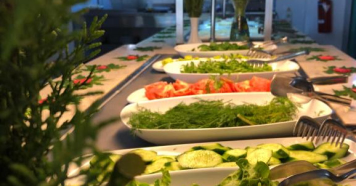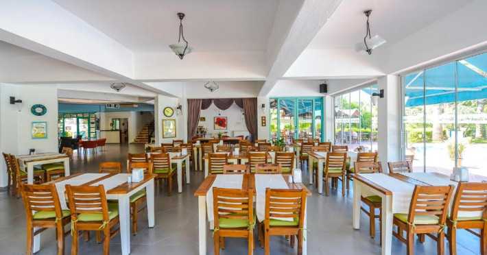 Micul dejun și cina sunt servite sub formă de bufet. Pentru pranz, restaurantul oferă un meniu à la carte. Există și un bar care servește băuturi răcoritoare la piscină.