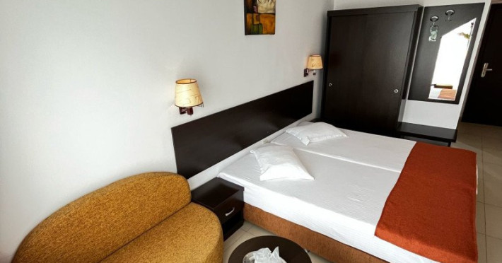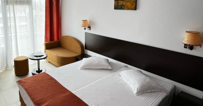 Camere duble cu balcon: aer conditionat, mobilier, televizor LCD, cablu tv, minibar, bai cu dus, mobilier de balcon, wi-fi, fotoliu fix, pat cu latimea de 1.80 m. Accesul in camere se face pe baza de cartela.