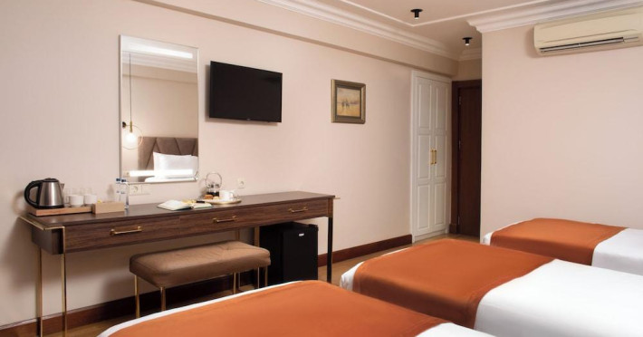 Welcome to Recital Park Hotel, a heaven of luxury nestled in the charming neighbourhood of Küçükkayasofya in Sultanahmet. Our boutique hotel offers a unique blend of elegance, comfort, and personalised service, ensuring an unforgettable stay for our discerning guests. Step into our meticulously-designed rooms, where contemporary sophistication meets timeless charm. Each room is thoughtfully appointed with luxurious furnishings, modern amenities, and breathtaking views of the surrounding historic landmarks. Immerse yourself in tranquillity as you unwind in our stylish and serene atmosphere. Our dedicated and attentive staff are here to cater to your every need, providing exceptional service and creating a warm and welcoming ambiance. Indulge in a culinary journey at our gourmet restaurant, where expert chefs blend local flavours with international influences to create a truly memorable dining experience. Whether you're here for business or leisure, Recital Park Hotel offers a seamless blend of luxury, comfort, and convenience, ensuring an unforgettable stay in the heart of Sultanahmet.Extra bed is paid ( 30).Welcome to Recital Park Hotel, a heaven of luxury nestled in the charming neighbourhood of Küçükkayasofya in Sultanahmet. Our boutique hotel offers a unique blend of elegance, comfort, and personalised service, ensuring an unforgettable stay for our discerning guests. Step into our meticulously-designed rooms, where contemporary sophistication meets timeless charm. Each room is thoughtfully appointed with luxurious furnishings, modern amenities, and breathtaking views of the surrounding historic landmarks. Immerse yourself in tranquillity as you unwind in our stylish and serene atmosphere. Our dedicated and attentive staff are here to cater to your every need, providing exceptional service and creating a warm and welcoming ambiance. Indulge in a culinary journey at our gourmet restaurant, where expert chefs blend local flavours with international influences to create a truly memorable dining experience. Whether you're here for business or leisure, Recital Park Hotel offers a seamless blend of luxury, comfort, and convenience, ensuring an unforgettable stay in the heart of Sultanahmet.Extra bed is paid ( 30).